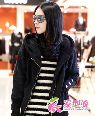 经典百搭的自然乌黑发色,不用担心不适合自己。中分的发型让脸型清新透亮,垂落在脸颊两侧的发卷头透露出柔美和动感。层次感十足的发卷让线条更加流畅,充满了活力。