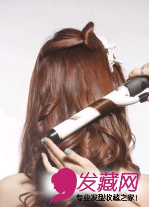 第一步 把头发分成前后两区,用28号卷棒上下交叉烫卷。
