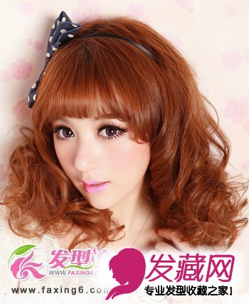 棕色的卷发发型潮流时尚,蓬松的波浪卷发,空气感十足,十分的优雅甜美。圆弧的齐刘海非常的时髦,衬托出了一双灵气的眼睛,明亮有神,蝴蝶结发箍的点缀,甜美气息难以抵挡。