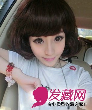 美丽的心形脸,打造起短卷发发型会特别的美丽哟,同样齐耳的头发长度,在耳朵位置设计波浪卷发的效果,形成饱满的形状,特别注意的是,用厚厚的长刘海遮盖较宽的额头,才能很好修饰脸型。