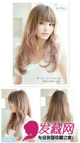 时尚发型经常能带出潮流元素,本季渐变颜色大注目!暖米色与婴儿粉的高光映照的时尚长发,脸庞周围的发梢用发卷卷出蓬松的灵动感。
