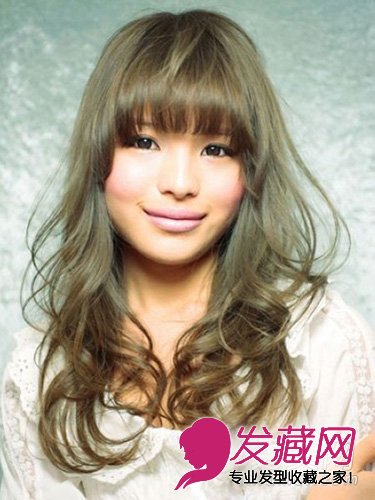 覆盖额头的齐刘海活泼减龄和富饶惯性随意大卷梨花烫,再配上日韩流行的亚麻色发色。顿时脸型变得柔美动人,从而完美的达到了瘦脸愿望。