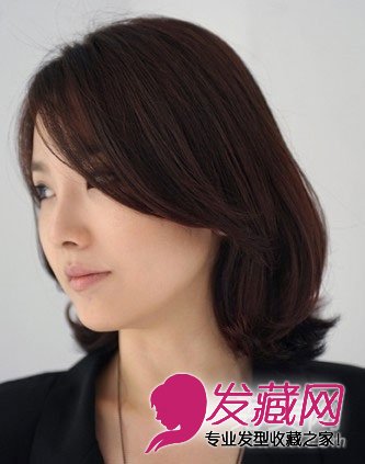 大片的侧刘海遮颜又修颜。而深色的染发造型更是突显肤色。