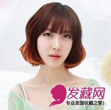 看这款韩式蛋卷头发型,发尾亮棕色染发很抢眼,优美的弧度增添发型的时尚感,搭配薄齐刘海,十分甜美。