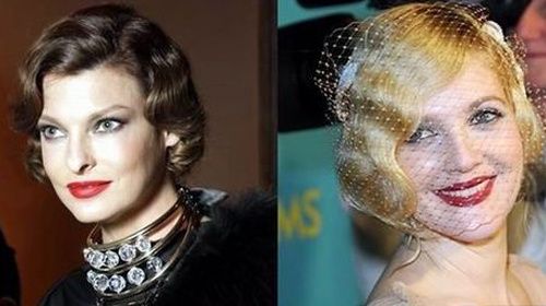 Linda Evangelista和Drew Barrymore所展示的是二十年代的波浪发型,与复古裙装以及古董长配件是完美搭配。
