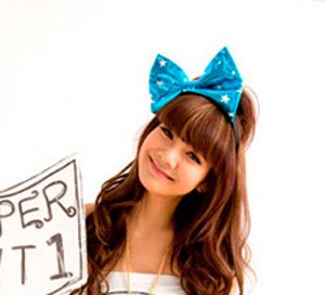 充满了淑女味道的大波浪长卷发,配上时尚大蝴蝶结的发箍,营造了甜美可爱的气息。
