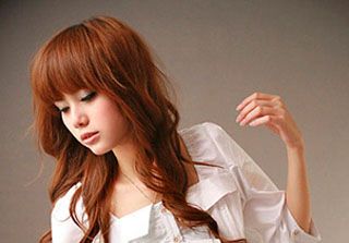 蓬松凌乱的卷发 加上整齐的刘海 ,再染上棕色的发色,使人洋气十足。