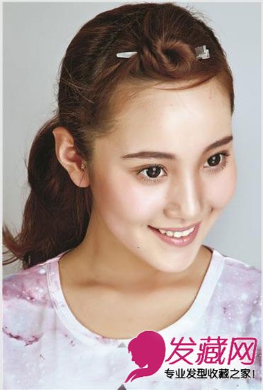先将刘海分出一个三角区,分缝以自然为主,不要过于整齐,方便与剩余头发刚好衔接,分出来的刘海区域用发夹固定。为了方便给大家看清步骤,后面头发我随意扎了一个马尾,在家里面自己做造型可以省略这一步!