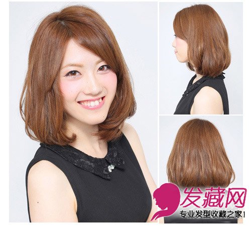长刘海侧分与两边的中发修颜瘦脸,发尾微卷设计增添甜美度,板栗色染发提亮肤色,靓丽迷人。