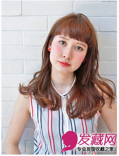 厚重的齐刘海造型修饰了脸型之后变得更有气质感,加上发尾不规则的烫发造型之后有种浪漫又自然的范儿。