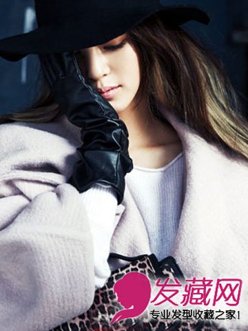 御姐们最心水的一款韩国明星发型设计,中分的长发搭配多色系挑染发,垂顺的披肩中分长发搭配帽子,大牌范儿十足。
