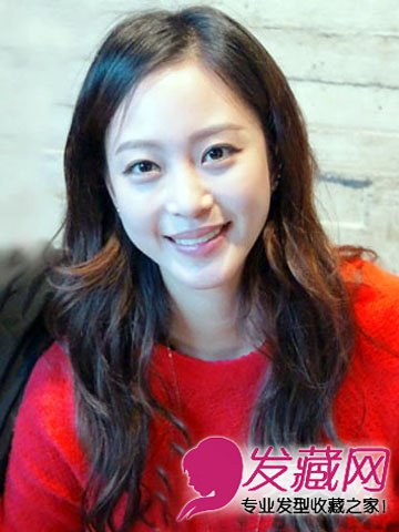 甜美清新的韩式长卷发烫发也是很新潮的2014冬季发型,波浪卷烫发让发丝蓬松感十足,侧分的露额长发清新亮丽,搭配亮色衣饰更显肤白。