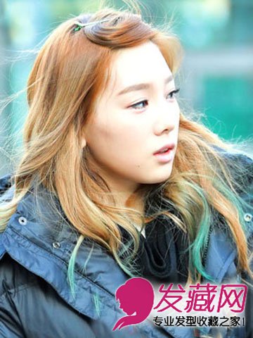 想在单调的冬天里拥有出挑的造型,你需要学习一下这款靓丽的韩式挑染发发型,黄棕色的染发配合薄荷绿的挑染发色,亮眼清新。
