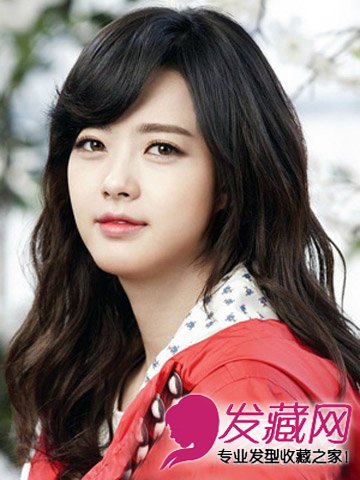 大脸女生同样可以尝试一下这款侧分的韩式长卷发,斜刘海瘦脸修颜,棕色染发染发长发更有韩流气息。