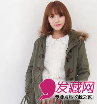 利落的棕色头发,打理成齐肩的短发发型,冬季清爽又不显臃肿感哦,齐刘海的发型设计,修颜又减龄,搭配巴掌大小的笑脸,可爱清新又甜美,冬季出门更迷人哦。
