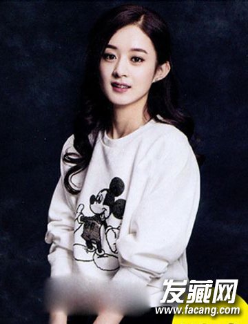脸小梳什么发型都好看,长卷发穿搭米奇白色卫衣,马上变活力少女。