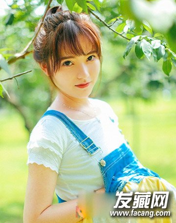春季最适合的造型当然要属丸子头了,温暖可爱而且俏皮吸睛, 加上甜美的空气刘海十分抢眼, 而且小编觉得这款造型更适合圆脸的妹子。
