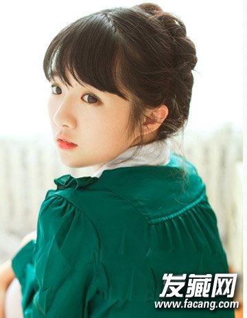 这一款小清新式的盘发造型显得清新活泼,而且不缺高贵的优雅气质, 造型自然大方加上精致的编发可爱灵动。