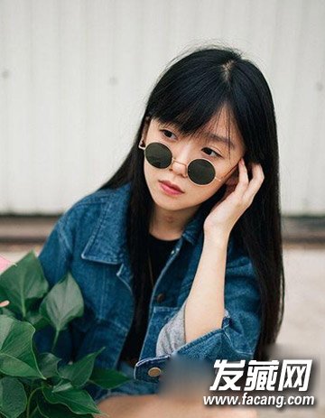 柔顺黑亮的长直发温婉动人,加上斜刘海发型的点缀显露出无比的甜美与时尚感来, 搭配上眼镜俏皮可爱,是女生们比较喜欢的造型哦。
