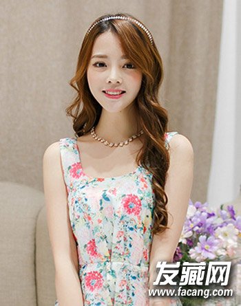 一款颇有名媛淑女气质的长卷发设计,偏分刘海勾勒出一张精致的小脸,显得颇有甜美范,简单的用一个发箍作为点缀,非常的别致好看。