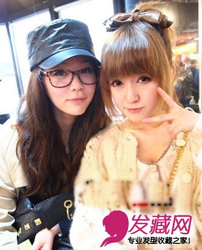 小丸子头,凸显脸颊的齐刘海,配上小蝴蝶,可爱的剪刀手,青春活泼。