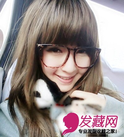 乖巧的柔顺直发,戴上大框眼镜,清新可爱,有点阿拉蕾的感觉。