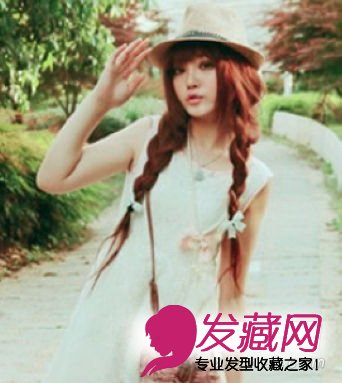 厚实感的中长发发型打造麻花辫迷人双发辫,马上让你与众不同!金棕色染发色为发型增添了时尚潮流元素,发辫尾部的素色发饰与深色的发色形成美妙的对比,给人浪漫唯美的感觉。 搭配一顶精美的草帽,富有乡村田园气息。