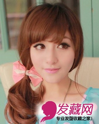 侧扎的马尾造型是一款极其简单韩式发型扎法,侧扎的马尾,在展现女生优雅气质的同时又有着一丝俏皮可爱的气息,利用蝴蝶结发饰做点缀,多了几分甜美气息,自然拨开的斜刘海发型,清新自然。