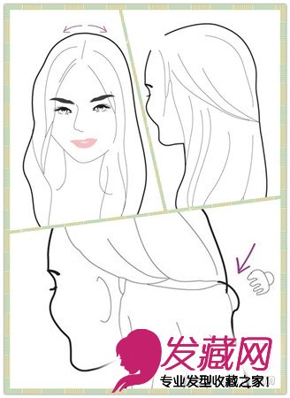 Step2 之后同前面最外层的头发中挑出大约5厘米左右的发束向后拉。