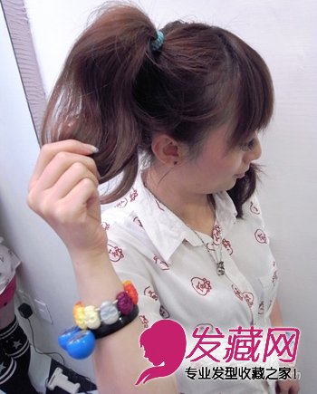 先把一边的头发绑成高马尾,记得绑到头顶,超过耳朵喔。
