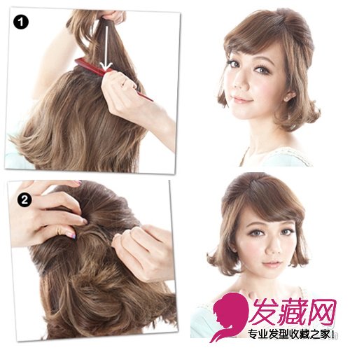 这一款简单而不失温柔气质的小绑发,非常适合赶时间出门的MM们。简单单单做个绑发也可以令短发更好看哦。将刘海后面的头发梳起一大股,为了使发型更加蓬松更有层次感,在绑发前用梳子将这一股的头发倒梳一下,再用橡皮筋绑起来,这款短发造型就完成了。