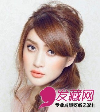 斜刘海搭上侧刘海的卷曲发丝,将温柔的女人味展现的十分具体。而带有少许蓬松效果的侧扎马尾发简单中体现出温婉娴雅的个性美。古铜的棕色掺杂其中,将复古的韵味体现出来。