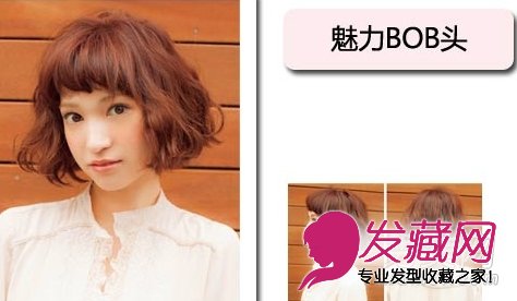 短发也可以很可爱很甜美哦~就像这款BOB头,平直的发长烫成很有层次感的中波卷发,配合短斜刘海,整个发型看起来很立体,蓬松的造型还可以使MM的脸看起来更小~如果染成咖啡色或者暖金色会更可爱哦~
