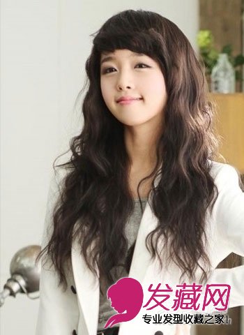 长发由耳朵下开始弯卷,而长发上部由头顶到弯卷处呈A字形,很好地遮住过宽的颧骨,使脸部线条更柔和。这款是经典的小公主发型。