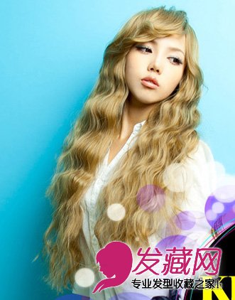 金色的超长发泡面头,此款发型比较偏日系。金色的泡面头,让你像芭比娃娃一样美丽。很适合皮肤白皙的女生
