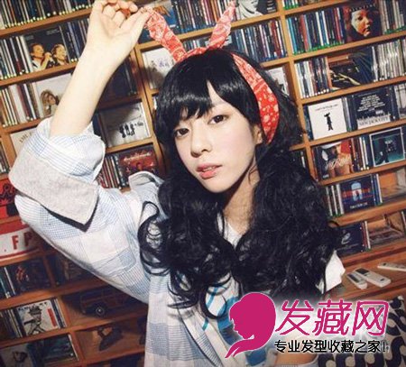 如果嫌泡面头太过繁杂,想换一个花样。那么,可以试试这样把泡面头,分别扎成2个小辫、再配上兔耳朵的发箍。非常的俏皮呢!