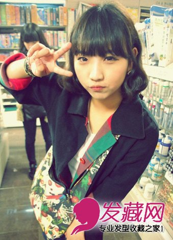 依旧是齐刘海的单发蛋卷头,不过此款蛋卷头并未打造出可爱的感觉。更多的时尚与成熟。从耳际处烫出的卷发,被放在耳后,这样的造型非常的精致时尚。