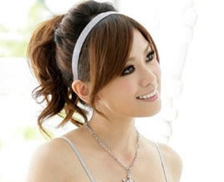 将头发扎成马尾辫,留适当发缕在额前。将头发全部往脑后汇集,注意不要将侧旁的头发漏下,并有意识使头顶的头发鼓胀,增加立体感。马尾在脑后2/3高度最为适宜。甜美的马尾辫简单易学有非常清凉,不过切忌使用过于复杂的饰物,以免显得花哨。一根简洁的细发箍即可!