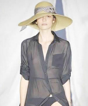 终于有了盘起来的发型,款款的帽檐把整个脸藏在阴影里,头发松散低低的盘在脑后,留几缕发丝散在耳边。