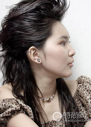 将所有的头发都往后梳,运用啫喱水打理出层次感十足且饱满的中发,会让你看上去风格很硬朗,搭配豹纹裙能起到柔和的作用。