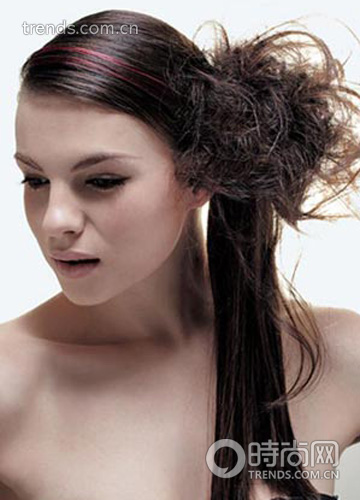 谁说一根直直的马尾无法衬出性感味道?用蓬蓬发髻+马尾的搭配法,外加几缕不经意的挑染,想要不性感也难!
