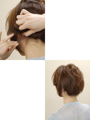 用夹子将拧好的头发夹。最后把发旋处的头发放下梳理好。一下子就变成了一个清爽可爱的短发 娃娃头,再配上一条裙子,整个夏季的风采都展现出来了。
