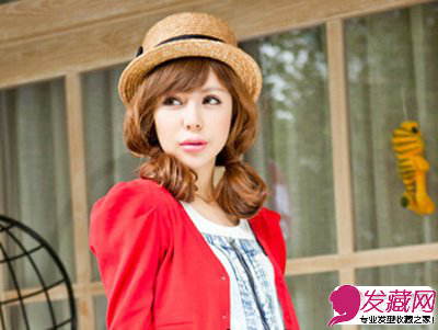 长发在脸侧扎成两个花苞自然垂在肩上,给人感觉脸特别小巧精致,侧分的斜刘海更显甜美可爱,加上别致的草帽,更人一种清新纯净的感觉。