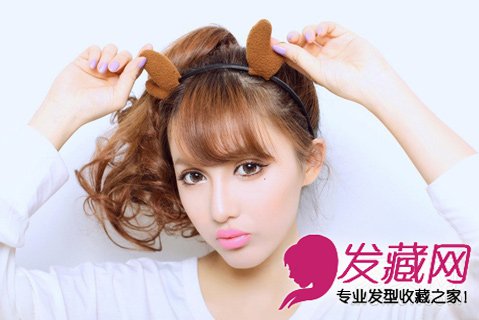 萌系少女发型,喜欢找点个性感,像这样洋娃娃卷发扎起马尾,配搭可爱发饰,萌系剧增。