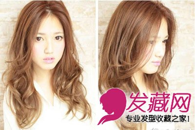咖啡的发色,相当的时尚。这颜色能够折射出明亮的光泽度,显得非常健康。然后,同样的中分刘海,通过从头顶往前的位置开始抓分的方式,对于额头稍窄的女生,修饰出鹅蛋脸有很好的效果。