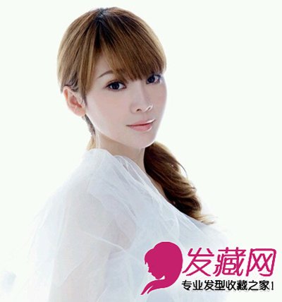 这款夏季女生发型,将所有的长发梳至一侧,栗色的染发衬托白嫩的皮肤,给人清爽的感觉,齐刘海设计非常吸人眼球哦。