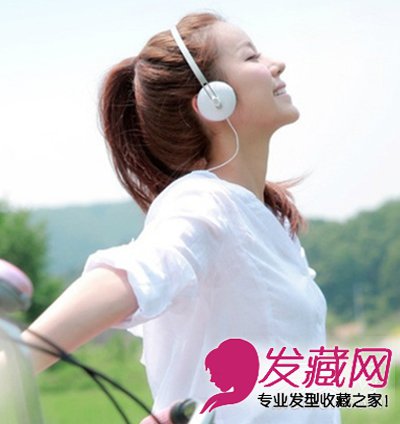 这样一款马尾发型走在草坪上,随便搭上耳麦,都能展现女生的清爽。松散的扎法给人感觉简单大方。