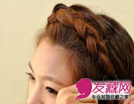 3、编织好后就讲发辫折向另一侧,使用小发卡固定位置。