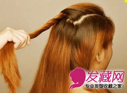 2、然后把上部分的头发进行扭转并扎好。