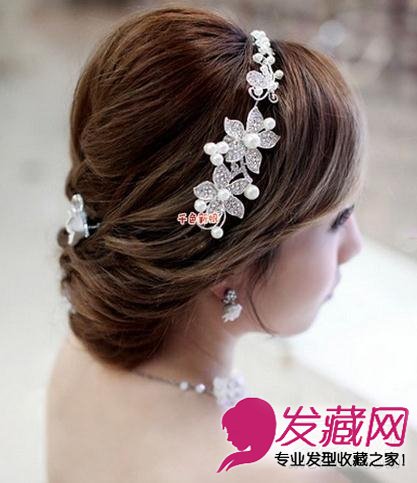 新娘发型也很适合佩戴发饰,婚礼就是要夺目吸引人一点,发饰配上精致盘发更绝美。